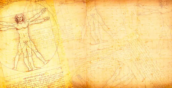 Leonardo estaba fascinado por la geometría y la proporción; por ejemplo, en su obra «El hombre de Vitruvio» integra brillantemente dos figuras geométricas, el círculo y el cuadrado, con las proporciones del cuerpo humano.