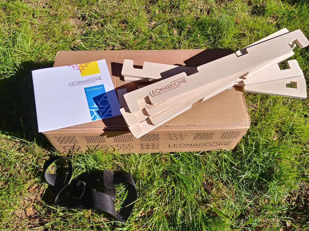 50 piezas de madera, de 50 cm cada una, más una guía con instrucciones para construir 11 cúpulas.